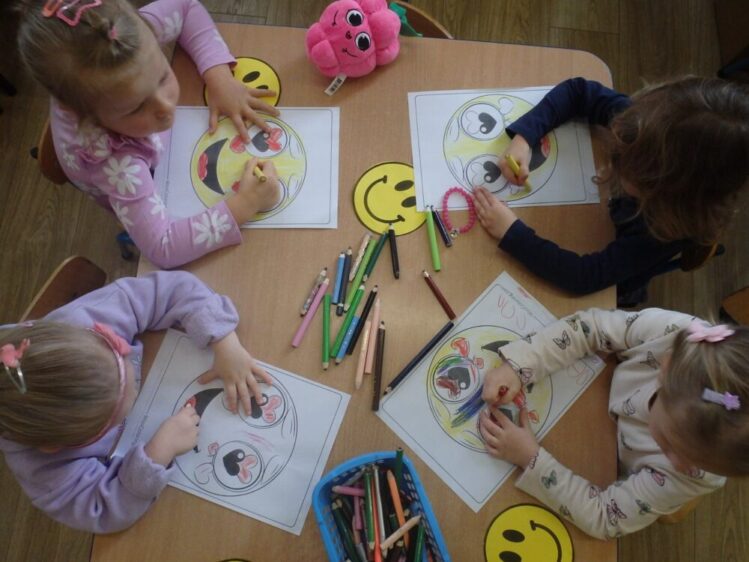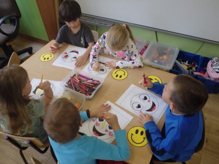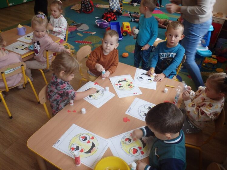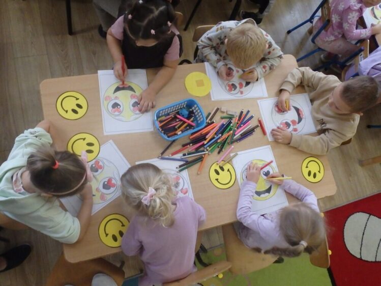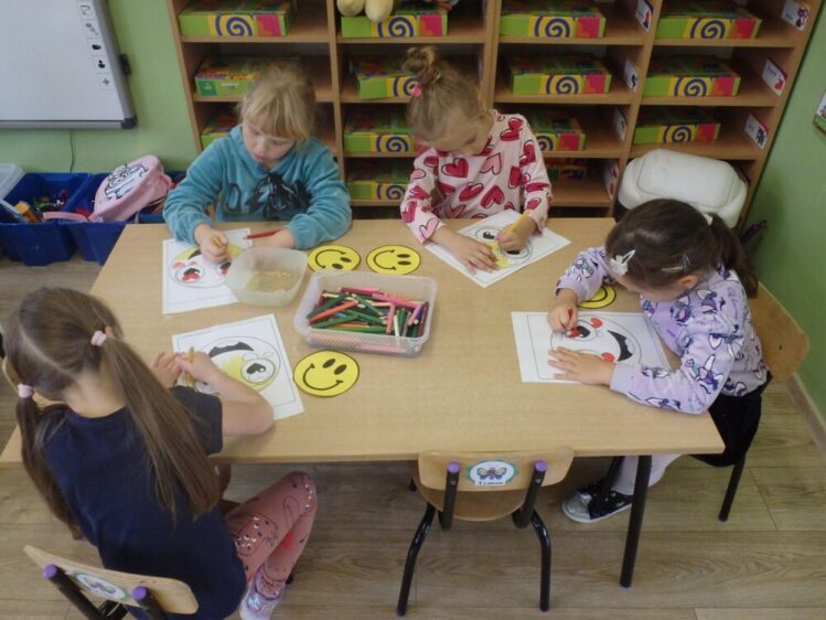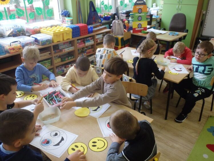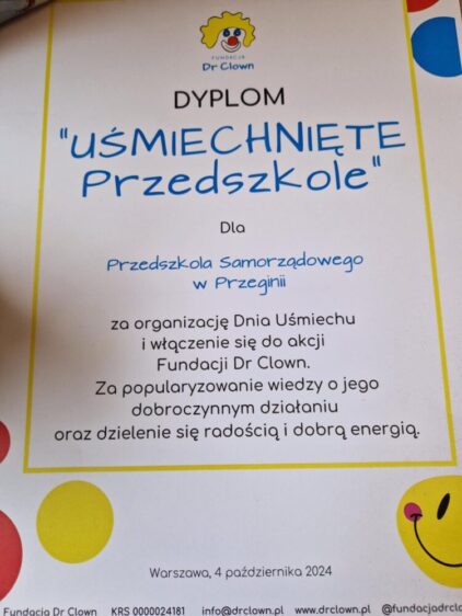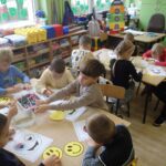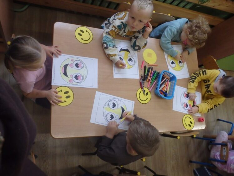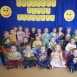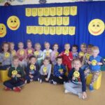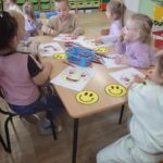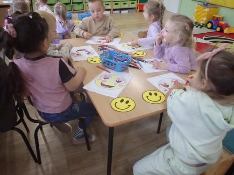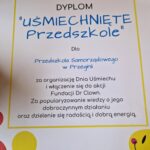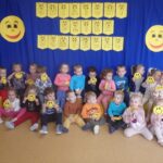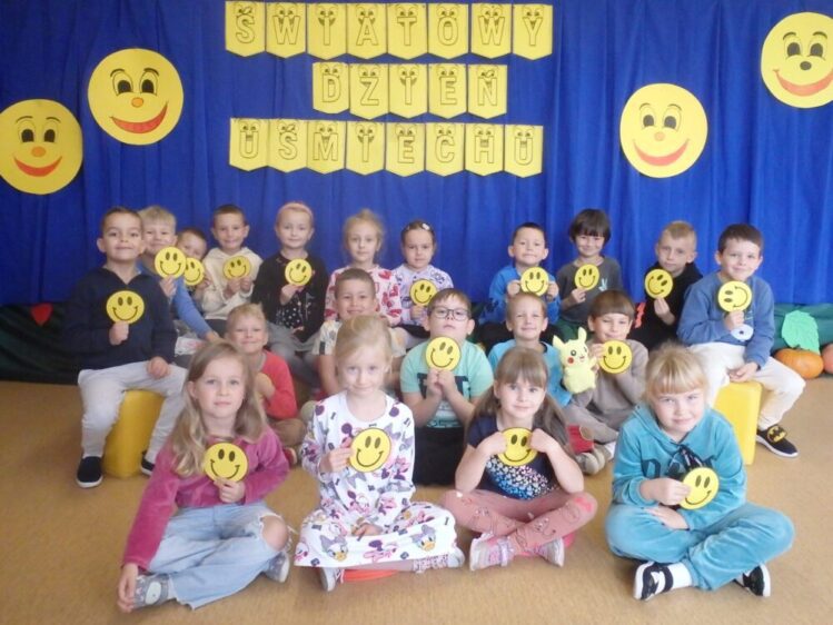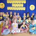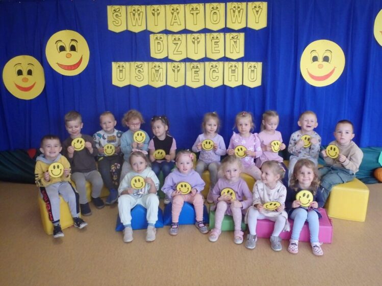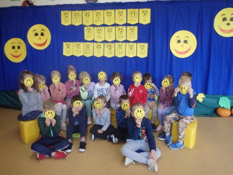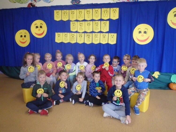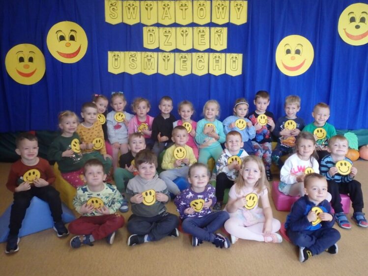 Dzieci z naszego przedszkola włączyły się w obchody  Światowego Dnia Uśmiechu. Z  tej okazji zorganizowane zostały zabawy, które miały  wprawić każdego przedszkolaka w dobry nastrój i wywołać u niego dużo uśmiechu na twarzy. Był to idealny moment, aby uświadomić dzieciom, że uśmiech nic nie kosztuje, a tak wiele może znaczyć dla drugiego człowieka. Ponadto przedszkolaki doskonaliły umiejętność rozpoznawania i nazywania uczuć oraz wykonały wesołe prace plastyczne.