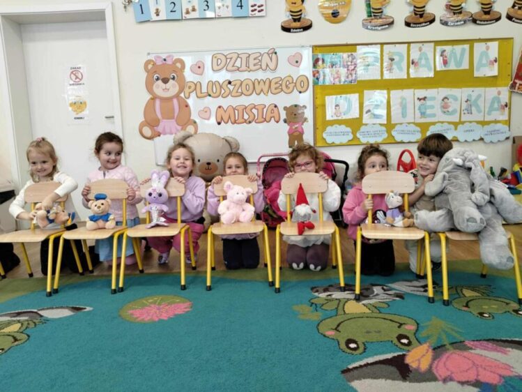 25 listopada w naszym przedszkolu dzieci uczestniczyły w obchodach Światowego Dnia Pluszowego Misia. Z tej okazji przedszkolaki przyniosły swoją ukochaną maskotkę, aktywnie uczestniczyły w zabawach ruchowych, plastycznych, konkursach oraz tańcach przy muzyce i piosenkach o ukochanym przyjacielu misiu. Ten wyjątkowy dzień był pełen uśmiechu, radości oraz wesołej zabawy i zostanie w naszej pamięci na dłużej.