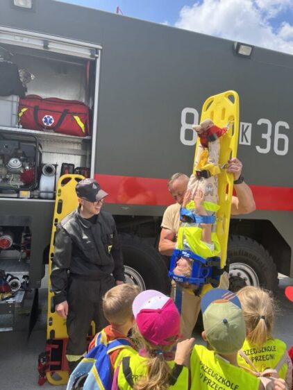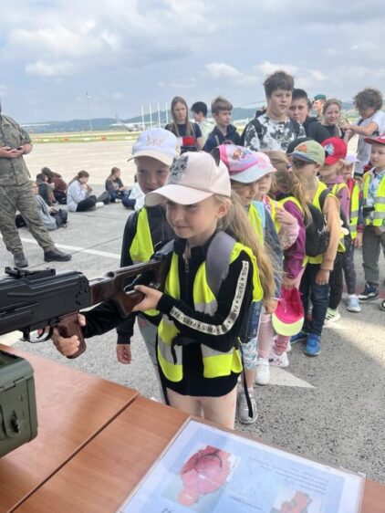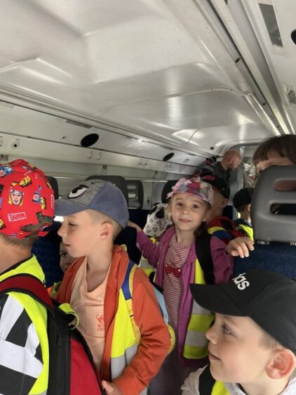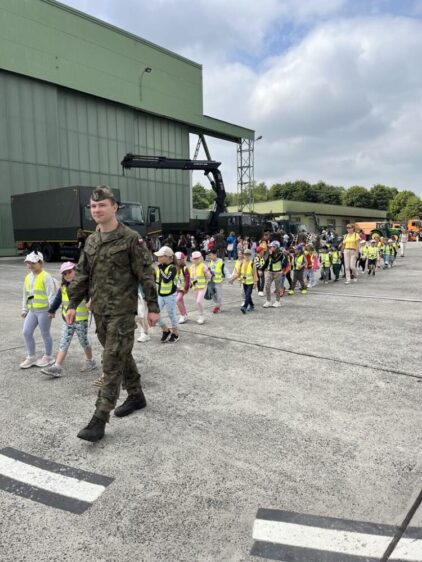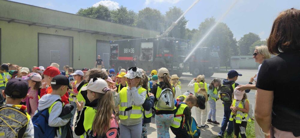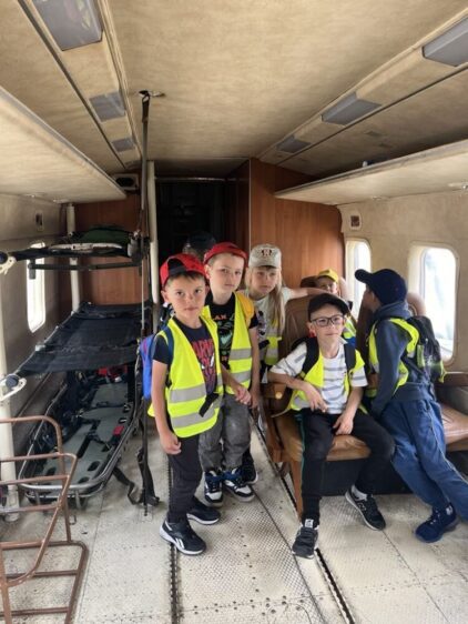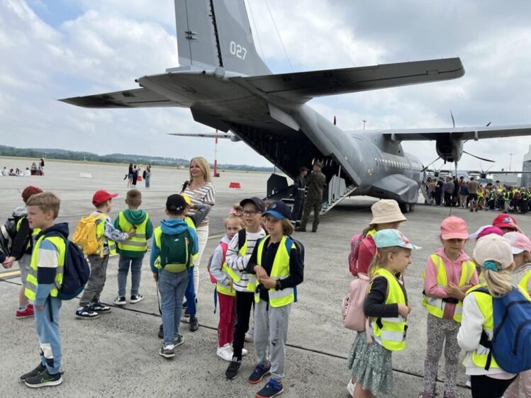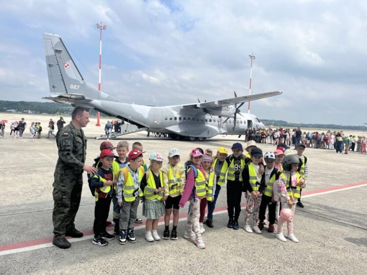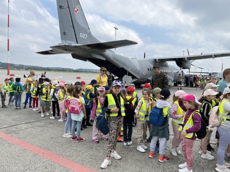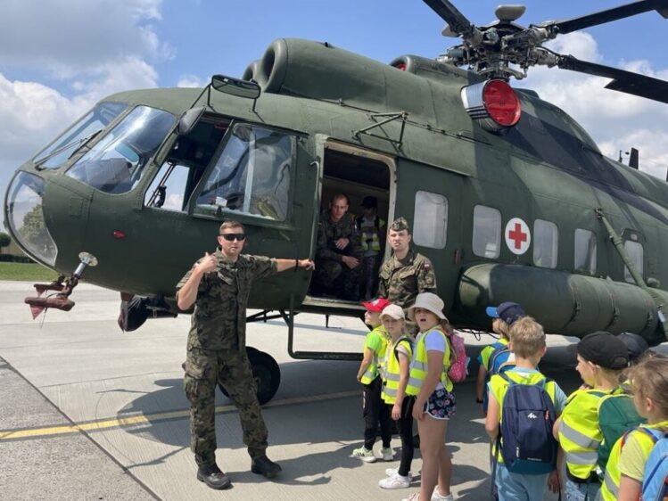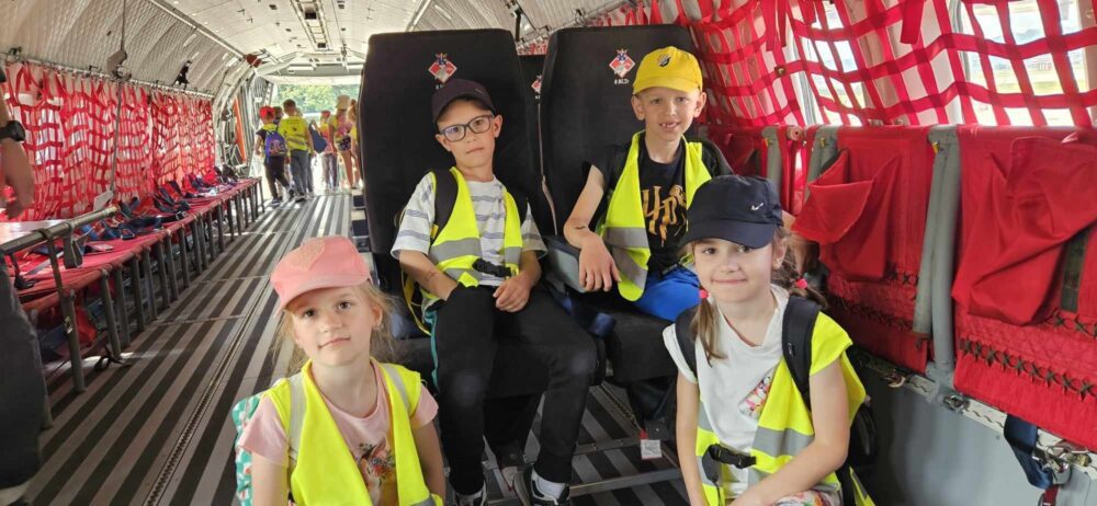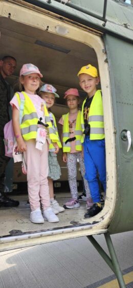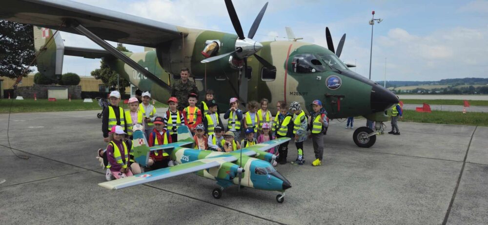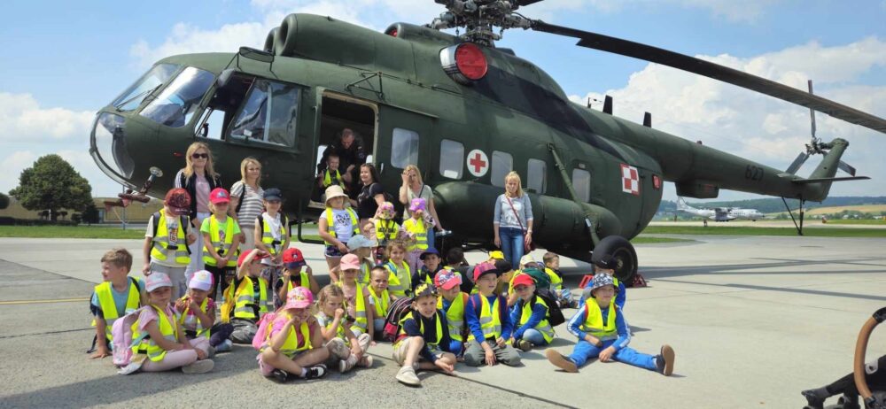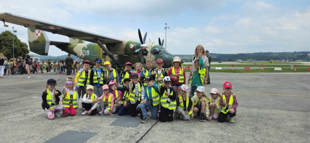 Nasze przedszkolaki 29 maja udały się na wycieczkę do Jednostki Wojskowej w Balicach. Była to doskonała okazja do rozwijania zainteresowań związanych z infrastrukturą wojskową. Dzięki uprzejmości kadry pracującej na lotnisku dzieci miały możliwość zobaczyć samoloty wojskowe, poznać specyfikę służby wojskowej oraz obejrzenie sprzętu wojskowego. Przedszkolaki pod okiem specjalistów z wielkim zainteresowaniem oglądały umundurowanie żołnierzy, sprzęt wojskowy, pojazdy bojowe, wóz strażacki oraz inne akcesoria. Ten wyjazd przybliżył dzieciom pracę i zadania jakie stoją przed żołnierzami i pracownikami jednostki wojskowej. Wycieczka sprawiła wszystkim ogromną frajdę i dostarczyła wiele niezapomnianych wrażeń. Z bagażem nowej wiedzy, przedszkolaki szczęśliwe wróciły do przedszkola.