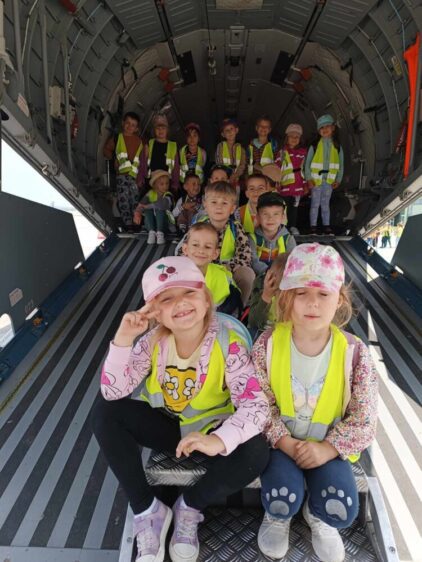 Serdecznie dziękujemy Rodzicom Rozalki Państwu Justynie i Jarosławowi B. za zaproszenie nas do Jednostki Wojskowej oraz pomoc w zorganizowaniu tak atrakcyjnej wycieczki oraz Panu Wojciechowi B. Ponadto dziękujemy całej ekipie 8 Batalionu Transportu Lotniczego, która pomagała w jej realizacji. PRZEDSZKOLAKI Z WYCHOWAWCAMI