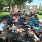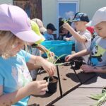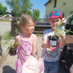 Wycieczka zakończyła się zjedzeniem kiełbasek z grilla, a do domu oprócz wspomnień dzieci zabrały własnoręcznie zasadzoną roślinkę.