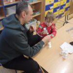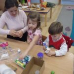 było poznanie tradycji bożonarodzeniowych oraz wykonanie ozdób świątecznych. Rodzice wspólnie z dziećmi z wielkim zapałem wykonywali piękne ozdoby wykazując przy tym wiele pomysłowości i kreatywności. Wspólna twórczość w atmosferze zabawy, zaangażowanie, przeżyte emocje a co najważniejsze czas, który dzieci spędziły z Rodzicami to bardzo cenne doświadczenie dla obu stron. Wszystkie cudeńka wykonane podczas warsztatów dzieci postanowiły, że będą ozdobą na ich własnej choince w domu.